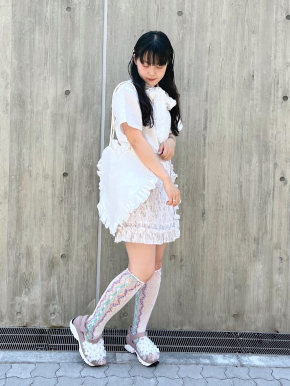 ~フリルたっぷりのミニスカートコーデ~ミニ丈好きのガーリーさんにおすすめのコーディネートです♡フリルをたっぷり使ったスカートや大きなリボンのブラウスを組み合わせて甘く可愛らしく♡厚底サンダルで脚長効果に!スタイルアップ出来るコーデです!