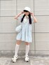 ~blue code~水色と白でまとめたミニワンピースコーデ♡夏らしさ満載のお花のシアーワンピースにリボン付きのバケットハットを被ってガーリーさもプラス。ハットに合わせてボリュームのあるリボンのサンダルを選び統一感を。ブルー好きの方必見のコーデです♡