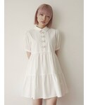 ~雨の日でも可愛いコーデ~チャイナボタンが印象的なワンピースはパフスリーブで腕周りを細く見せられます◎ティアードのミニワンピースなのでふんわりとしたボリュームに!シューズはレインブーツを合わせて雨の日でも◎花柄なので無地のお洋服に合わせるととっても映えます!雨でもるんるんになれますよ♡