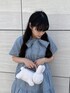 ~ガーリーなリボンコーデ~大人気のボウタイシリーズからワンピースが登場♡ふんわりとしたシルエットが可愛らしい1枚。無地のワンピースだったので小物は白を合わせて、より可愛らしく♡色物のお洋服にうさぎさんのバッグを合わせることで、うさぎさんが目立ってコーデのポイントに◎