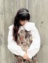 ~お散歩コーデ~ わんちゃんがぎゅっと詰まった犬好きにはたまらないジャンパースカートに大きな襟のブラウスを合わせてガーリーに。めずらしい柄なので個性的なデザインがお好きな方におすすめです!インナーはブラウス以外でもメロウトップスやタートルニットなどで合わせるとカジュアルにも着ていただけます◎