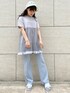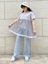 ︎︎◌all blue code︎︎◌夏にぴったり涼しげ全身ブルーのガーリーコーデです!トップスはチュールがレイヤードされたとっても可愛らしいTシャツ。ガーリー好きにはたまらないですね♡パンツはギンガムチェック柄でとっても夏らしい!裾にかけて広がっているシルエットなので脚長効果になりスタイルアップ◎ こちらのコーデのようにガーリーなTシャツにパンツを合わせるとカジュアルさも演出出来ますね!カジュアルガーリーコーデがお好きな方にオススメです♡サンダルはトップスとボトムスに合わせてブルーの靴底のお花のサンダルを合わせて統一感を出しました♡