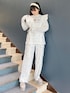 ◌ラフ×ガーリーコーデ◌ロンティーだけでは物足りない!っと思っている方にオススメのコーディネート♡トップスは蝶々のプリントが可愛らしいロングTシャツ。パンツに合わせるとカジュアルになりがちですがビスチェを合わせることでカジュアルでラフなイメージからガーリーな印象にもしてくれます♡ビスチェはTシャツやワンピースに合わせても◎1年を通して着られ、お持ちのお洋服の印象がガラッと変わります!1枚お家にあると便利に使えますよ!パンツは凹凸のあるサーマル生地が特徴的なゆったりとしたパンツ。ウエストもゴムでリラックスして履ける為、おうち時間でも大活躍間違いなし!お出かけの際はデザイン性のあるものシューズを選ぶとラフになりすぎないのでオススメです!