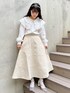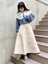 ◌White×Blue◌女性らしいシルエットになれるガーリーさんにオススメのコーディネートです!トップスはデザインの異なる2つの襟が印象的なブラウスにチャイナボタンが可愛らしいカーディガンをレイヤードさせました。レイヤードさせることでブラウスの襟が強調され、よりガーリーな印象にさせてくれます♡ブラウスの襟が大きめに作られていて、肩周りをカバーしてくれるので肩幅が気になる方にもオススメです◎カーディガンはアクリルを使っている為、とても柔らかくふわふわとした触り心地◎また袖口にかけてボリュームがあるのでインナーに厚手のものを合わせても違和感なく着て頂けます!スカートはAラインのシルエットが可愛らしいチェックと花柄のキルト生地で作られた個性的な1枚!裾に広がりがある為、ウエスト周りを細く見せてくれて女性らしい印象に◎全体のバランスを見てシューズはBGEのミュールを合わせました!光が当たった時にBlueに光るのでカーディガンとの相性ぴったり♡