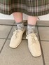 ◌秋先取りのチェックコーデ◌秋らしさのあるワンピースを主役にしたコーディネートです!主役のワンピースは襟が大きい所が特徴的◎大きな襟は小顔効果に◎落ち着きのあるチェック柄なので甘くなりすぎずに着られる所もポイントです!とことんガーリーに合わせたい方は今回のように明るい小物をプラスするとより可愛らしい印象に!大人っぽく合わせたい方は暗めののものを選ぶと甘すぎずにコーディネート出来ます◎丈感は156cmで足首が見えるくらいの長さなので靴下も楽しめる丈感です!ぜひ真似してみてください♡