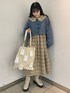 ◌秋にオススメブルーコーデ◌とことんガーリーなコーデが好きな方にとってもオススメなコーディネート♡ワンピースは少しくすんだ色のベージュやオレンジ、ブルーを使用したチェック柄の生地で作られていて秋らしさを演出してくれます。襟が大きくフリルがついている所が特徴的◎丈感は156cmでふくらはぎ3分の1くらいの長さなのでショート丈のブーツを見せることが出来ます♡ 1枚で合わせても可愛らしいのですが、今回のようにカーディガンを合わせると襟が目立ち、さらにガーリーな印象になります!ワンピースのブルーのチェックに合わせてカーディガンをブルーやベージュ系の色で合わせるとコーデ全体に統一感が出ます!今回合わせているカーディガンはショート丈なので脚長効果に◎またチャイナボタンが印象的なので視線が上に行きスタイルアップ出来る優秀な1枚です!小物は柔らかい印象にしたかったので白に近いベージュの小物を合わせ優しい雰囲気になるようにしました♡