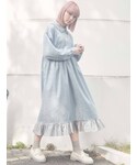 ◌くまちゃんとお散歩コーデ◌くまちゃんのバッグ、くまちゃん刺繍のワンピースを使ったスペシャルくまちゃんコーデです♡ワンピースは胸元のくまちゃんが特徴的な1枚。前ボタンをしっかり留めるとくまちゃんが手を繋いでいる、とても可愛らしいデザインになっています!また生地がジャガードになっているので光沢感があり華やかな印象にしてくれます!丈感は156cmでくるぶしがちょうど出るくらいの長さになっています◎カーディガンはニットに金箔や銀箔を上から塗っているような豪華な1枚。少し大きめに作られているのでインナーを厚めの物にしても楽に着られます!こちらのカーディガンはシンプルなデザインなので大人ガーリーさんにもオススメのアイテムです♡主役のバッグは親くまちゃんと子ぐまちゃんがセットになっているバッグ!持つだけで一気に可愛らしいガーリーな印象になります!くまちゃんとお出かけしたい!お散歩したい方にオススメです♡