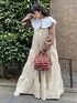 ◌秋色お散歩コーデ◌バッグやニットにブラウンやオレンジ系の色を入れた秋にぴったりのコーディネートです!トップスにはブラウスの上に薄手のニットを重ねたレイヤードコーデ。さらっと秋色を取り入れることで一気にコーデに温かみが出て落ち着いた雰囲気に◎ガーリー好きの方は今回のように大きな襟のブラウスを合わせると可愛らしく着られます♡バッグはニットに合わせて秋色のジャガードショルダーバッグを合わせ統一感を出しバランスをとりました!ワンピースは凹凸のある生地で、よく見て頂くと花柄の凹凸になっているのがポイント◎柄付きのワンピースですが色が1色で統一されているので柄物を合わせても違和感なく着ていただけますよ!丈感は156cmの方だとヒールが必要ですが、肩紐を結んで頂くとキレイに着られるので低身長の方でも安心してきていただけます◎普段着にはもちろん、生地が華やかなので少しおめかししたい時にも合わせ方1つで印象を変えて着られますよ♡