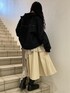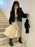 ◌ブラックを取り入れたガーリーコーデ◌ブルゾン、バッグ、シューズをブラックで合わせ、少しカチッとしたガーリーなコーディネートです!ブルゾンはパイピングに柄が入った特徴的なアウター。柄のパイピングなので重くなりすぎず、ブラックが気慣れてない方でも挑戦しやすい1枚!もふもふした生地感なので真冬でも着られます!フリルの襟も付いていて可愛らしさも◎トップスはタイトなリブニット。パイピングが特徴的なので1枚で個性的な印象にしてくれます!スカートはアシンメトリーなデザイン。裾からフリルが少し出ているところも可愛らしいスカートです♡丈感は156cmでふくらはぎ真ん中あたりの長さになっております!低身長の方にもオススメです♡小物はブラックを合わせ統一感を出しました!