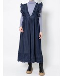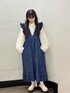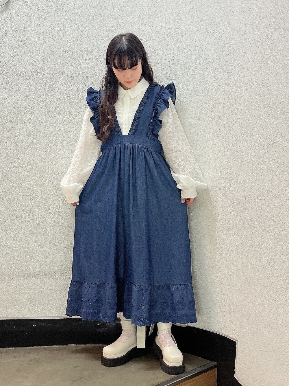~ デニムガーリーコーデ ~ デニムのワンピースを使ったガーリーコーデ♡ お花柄のブラウスやフリルのデニムワンピース、リボンのシューズなど可愛らしいポイントがぎゅっと詰まったコーディネートです◎