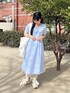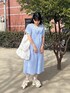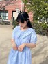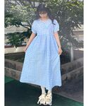 ~ ギンガムチェックのガーリーコーデ ~ ギンガムチェックが可愛らしいワンピースは大きな襟がポイント! お花の刺繍も装飾されていて更に可愛らしいデザインに♡ またワンピースの袖がパフスリーブデザインなので腕周りを細く見せてくれます◎ 甘く仕上げたい方には大きなフリルが特徴的なトートバッグを合わせてふんわりと。 プラスで厚底のリボンスニーカーを履いてスタイルアップさせました!