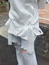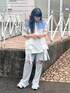 ~ガーリーなTシャツコーデ~ Tシャツでも可愛らしいコーデに! merry jennyらしいレースアップのTシャツにフレアパンツを合わせてカジュアルガーリーに。 差し色にブルーの付けフードを合わせてワンポイントにしました 脚長効果の為に厚底のサンダルを合わせてスタイルアップ◎