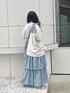 ~ガーリーなラフコーデ~ レースアップのリボンが可愛らしいTシャツにティアードのスカートを合わせた、ラフだけどかわいいコーディネートです♡ オーバーサイズのTシャツはひじまでの袖感でゆったり着られます◎ ガーリーさを出すためにふんわりとしたボリュームのあるスカートを合わせました!