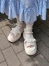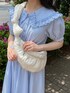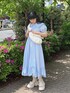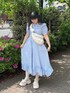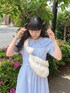 ~爽やかなブルーコーデ~ 1枚でパッと可愛らしいギンガムチェックのワンピースに白の小物を合わせたガーリーなコーディネートです♡ ワンピースは156cmでくるぶしがしっかり見える丈感なので靴下も楽しめます!またスッキリ見える所もポイント◎ 小物はぽこぽことした立体感のあるアイテムを合わせてポイントにしました!