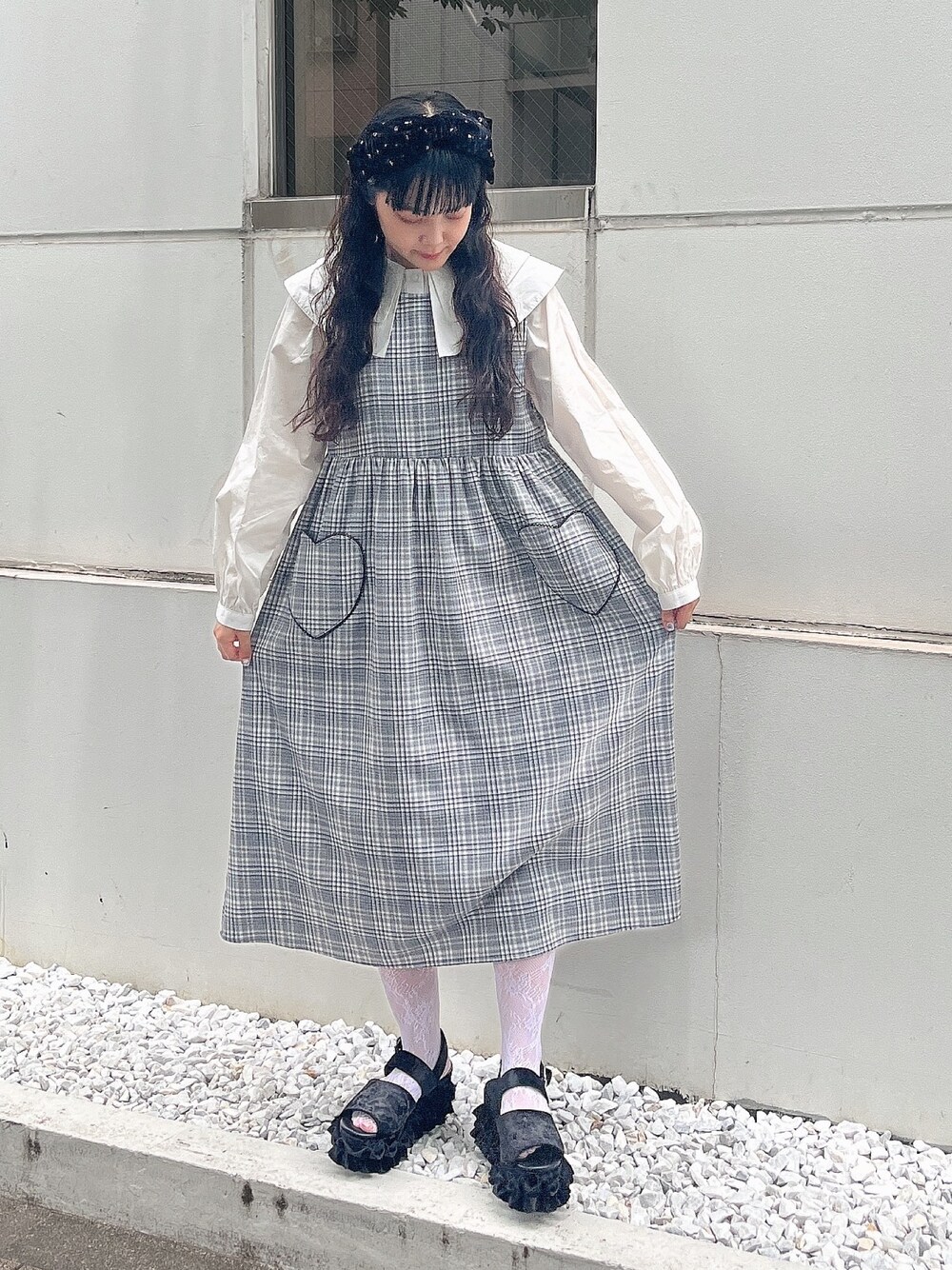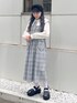 ~ ガーリーなモノトーンコーデ ~ チェックのワンピースにダブルカラーのブラウスを合わせたモノトーンコーデ。 ワンピースのハートのポケットがシンプルの中に可愛らしさを出してくれる唯一無二のアイテム♡ 小物はブラックでまとめて統一感を出しました◎