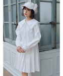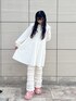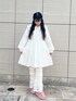 ~ワンポイントコーデ~ 全体的に白でまとめて、ワンポイントにピンクのサンダルを合わせて足元まで華やかなコーディネートにしました♡ ミニワンピースはmerry jennyでは珍しいプリーツスカートに。襟が大きめで、またリボンも付いているので顔周りも華やかに! 今回のようにパンツで合わせても、またワンピース1枚でも可愛らしいアイテムになってます◎