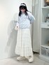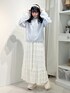 ~春の淡色ブルーコーデ~ 淡色ブルーのカーディガンを使用した少し肌寒い春にオススメのコーディネートです! 主役のカーディガンはサラッと羽織れる薄手のアイテム!肌触りがいいのでずっと触っていたい1枚。シンプルなカーディガンですが、ボタンがうさぎさんになっていてる所が可愛らしいポイント♡ 袖からふわっと出ているレースは総レースのトップス。袖のフレアが特徴的で1番のポイントです! スカートはトップスのレースに合わせて選んだフレアスカート。ストンとしたシルエットなので着膨れせずに着られます!156cmでくるぶしくらいの丈感です◎ シューズはガーリーな雰囲気にしたかったのでレースアップの厚底シューズを合わせました◎