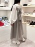 ~グレーなガーリーコーデ~ 背中の大きなリボンが特徴的で可愛らしいガーリーコーデ♡ 【ワンピース】 冬らしい生地を使用したワンピースは、背中の大きなリボンが特徴的な1枚。大きめな襟のブラウスに合わせてもリボンが隠れないようなデザインなのでお手持ちのどんなインナーにも合わせやすい!丈感は156cmでくるぶしが少し見えるくらいの丈感です! 【ブラウス】 襟元のキラキラとしたレースが可愛らしいブラウスはどんなお洋服にも合わせやすい1枚! 【バッグ】 マルっとしたバッグはレースがたたきつけられていて、ローズのワンポイントがバレエコアなトレンド感あるショルダーバッグです! 【スニーカー】 軽さがあり歩きやすい厚底スニーカーはベルクロデザインで着脱 しやすい1足◎23.5cmでMサイズを着用しております!今回は外していますがレースアップのリボンが付いているのでバレエコアな足元にすることも出来ます◎