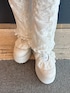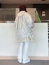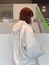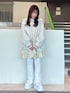 〈アウター〉 ポケットにたくさん収納出来るバッグのようなワークブルゾン。携帯はもちろんリップやタオルなどの小物も分けて入れられます! フリルやリボンも付いているのでカジュアルになりすぎない一枚です◎ 〈ワンピース〉 ハリのある生地がたっぷり使われたミニワンピースは裾のフリルもたっぷり。フリルたっぷりですが無地なので甘くなりすぎないデザイン、様々な雰囲気で着回しが出来ます◎ 〈トップス〉 フード付きレースインナーでフード部分に長い耳ががついているのでうさぎの耳が垂れているように見えます◎フード被って写真を撮ったり、また普段の後ろ姿も可愛らしく見せられます! 〈パンツ〉 ミニワンピース着たいけど足を出すのが気になる方にオススメのパンツです!スッキリとした細身シルエットで重ね着しても軽い印象に◎ 〈シューズ〉 脚長効果バツグンの厚底シューズはベルトで着脱可能で履きやすい一足!リボンも付いているのでレースアップシューズとしても楽しめます ◎23.5cmでLサイズを着用しております。