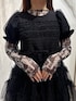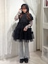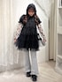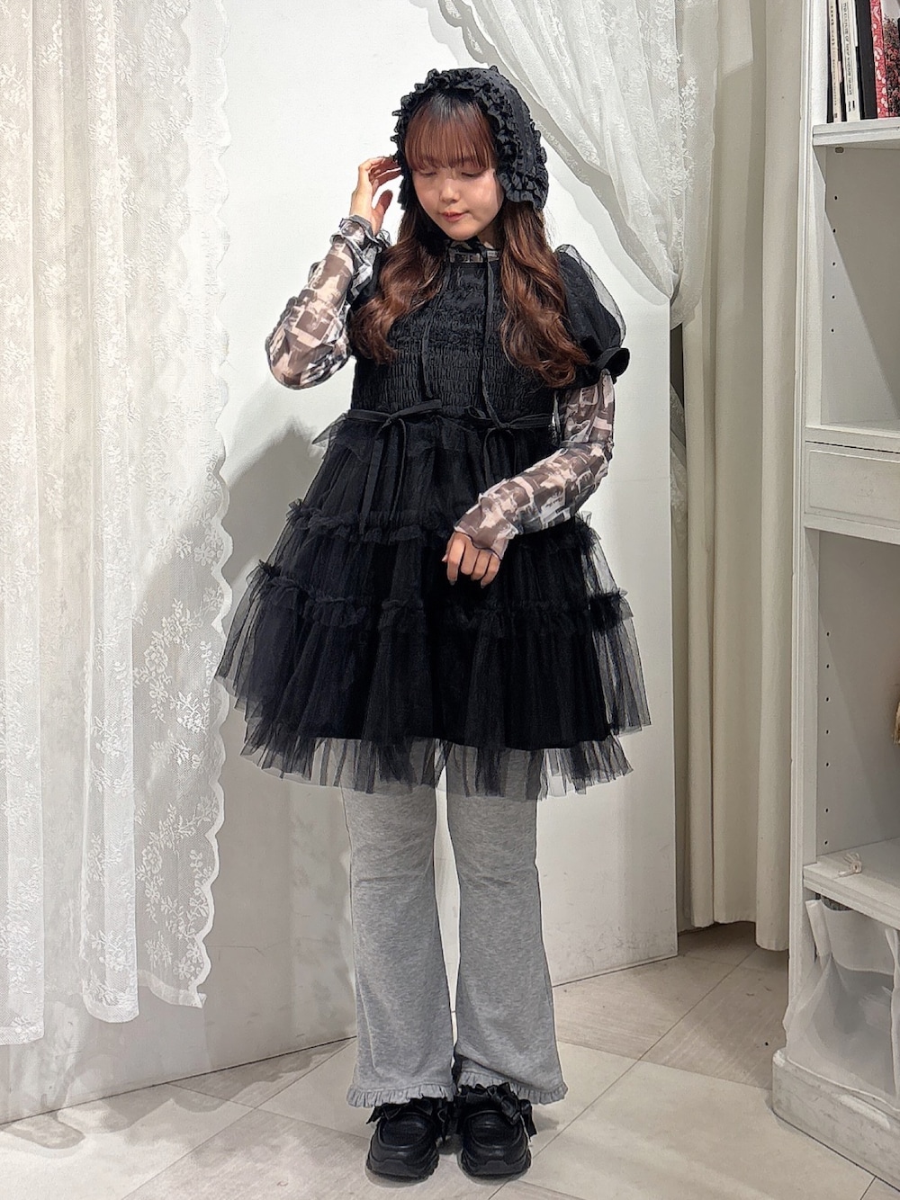 【ヘッドドレス】 控えめな花柄が可愛らしいヘッドドレス。透け感があるのでブラックでも重たく見えずらいので春にもオススメです◎ 【ワンピース】 チュールがたくさん使われているのでボリューム感のあるミニワンピ。ふんわりとしたシルエットですが胸元がシャーリングデザインなのでメリハリのあるデザインです! 【トップス】 透け感のあるシアートップスは一枚でも、インナーとしても大活躍してくれます!