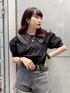 スモッキング刺繍を落とし込んだビックカラーのブラウス♡ボリュームのある袖口が可愛いjouetieならではのアイテムです!大人っぽさのあるブラックが私のおすすめ♡ボトムや小物もオールブラックで合わせた甘辛なスタイリングにしてみました。 ボトムのフリンジデニムショートパンツはスッキリとした丈感とハイウエストで脚長効果も抜群です!トップスインはもちろん、ビッグサイズのトップスと合わせてフリンジをチラ見せするのも◎