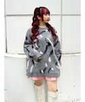 MARI(jouetie)のニット/セーター「モチーフシャギーニット リボン/スター/赤ニット」を使ったコーディネート