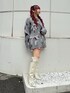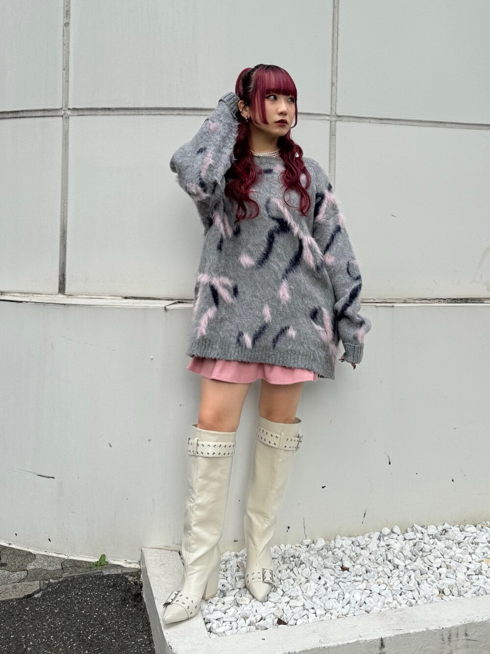 リボンが可愛いシャギーニットが登場୭ৎ ࣪ ׅ ⊹ グレー×ピンクで甘めのスタイリングに! 153cmでお尻がしっかり隠れる丈感です✮ ショートパンツを合わせるとミニワンピ風の着用も可能ですが、今回あえてピンクのフリルスカートをチラ見せ♡॰*