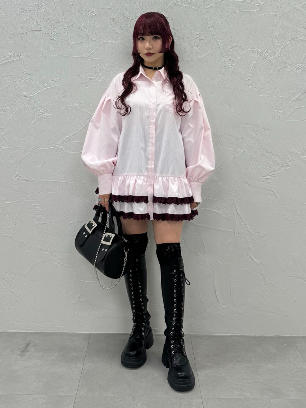 MARI(jouetie)のシャツ/ブラウス「【再入荷】ヘムレースフリルチュニックシャツ」を使ったコーディネート