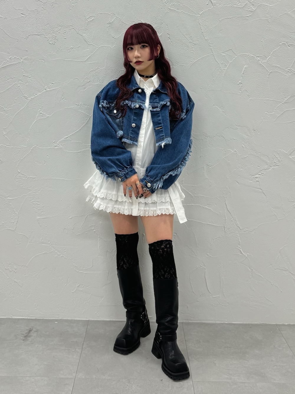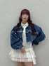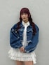 MARI(jouetie)のデニムジャケット「ワイドクロップドフリンジGジャン【セットアップ対応】」を使ったコーディネート