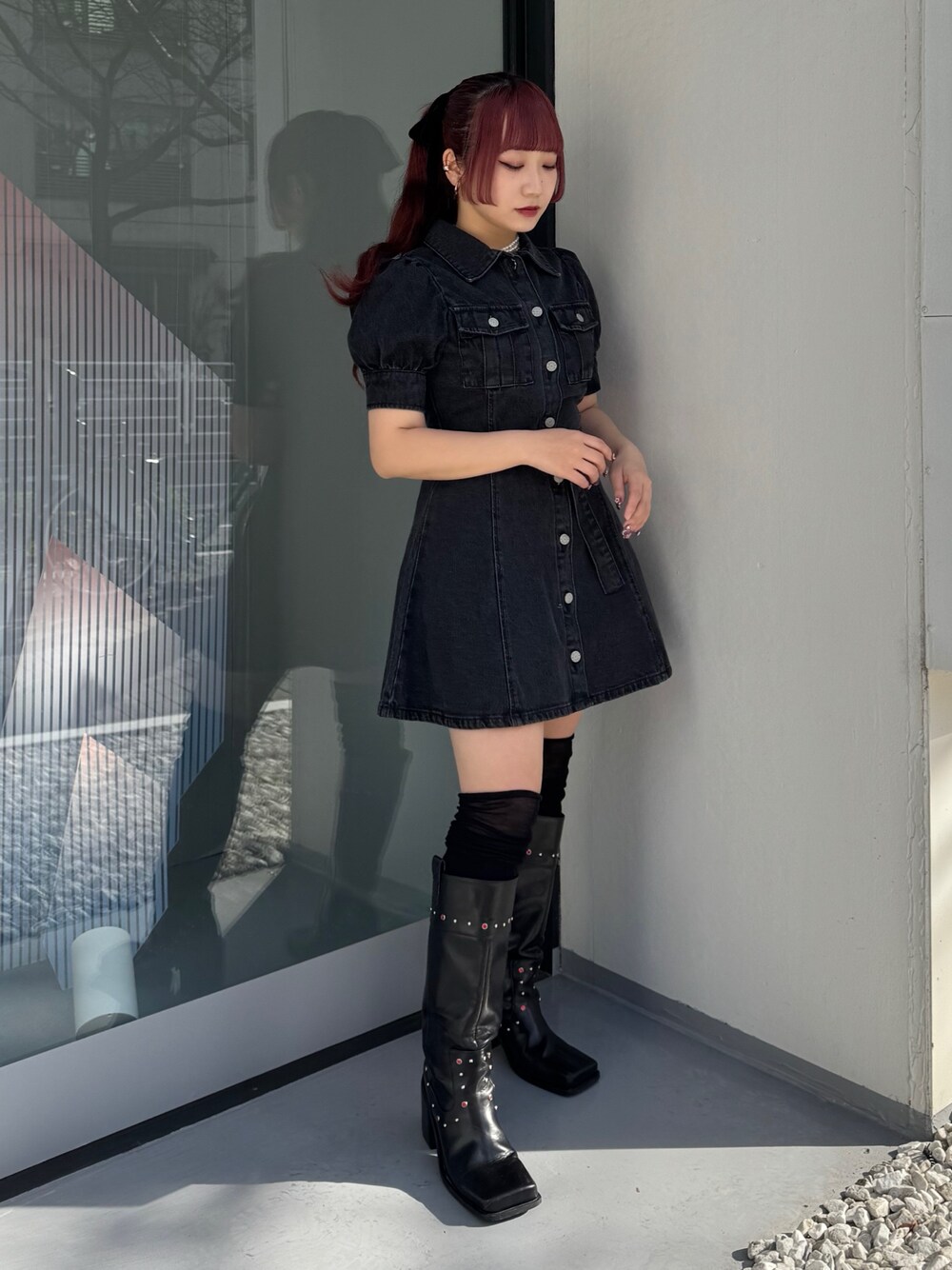 MARI(jouetie)のワンピース「デニムフレアミニワンピース」を使ったコーディネート
