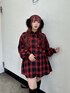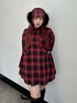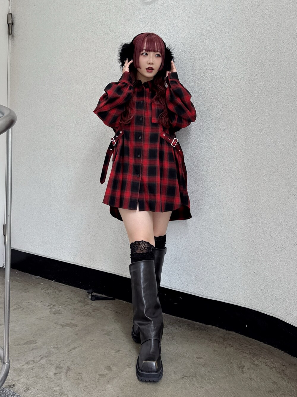 ダークな赤チェックが可愛いチュニックシャツ❤️ウエストはベルトもついているのでシルエットも綺麗です♪