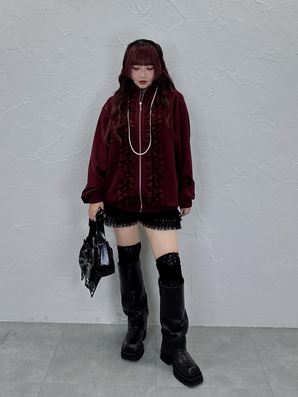 MARI(jouetie)のジャージ「ルーズフリルトラックジャケット【セットアップ対応】」を使ったコーディネート