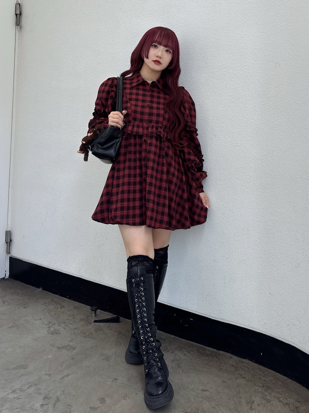 MARI(jouetie)のワンピース「フリルショルダーバルーンミニワンピース」を使ったコーディネート