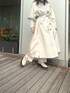 MURUA今季イチオシのサイドにスリットが入ってるトレンチコート!スリット部分にはボタンが付いてるのでスリットの開き具合を調節できます。後ろはサテン生地を使用しているのでコーデ全体に軽さと女性らしさがプラスされます!付属でベルトも付いてるのでワンピ風にも着ていただけます。デザイン性あるトレンチなので他と差がつくコーデに仕上がります♡ トレンチを主役にしたかったので、淡いライトブルーのタートルにアイボリーのパンツと中はシンプルな春カラーでまとめました。