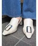 MURUAらしいデザイントレンチコート!絶妙なブルーのグラデーションは他と差がつきます!フロントのドレープと少し艶感のある生地がとても女性らしいです!私は中にデコルテが綺麗に見えるリブニットと、スタイルアップ効果抜群のスキニーデニムを合わせて大人カジュアルに仕上げました。足元は抜け感の出るアイボリーのミュールを合わせて上品な印象にしました。