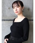 オールブラックの綺麗目コーデ! トップスは背中がレースアップデザインなのがポイント!前もアシンメトリーのスクエアネックなのでデコルテが綺麗に見えます。スカートは異素材を重ねたレイヤードデザインが今年らしい一枚!光沢感のあるプリーツが女性らしさをプラスしてくれます!プリーツからのぞく異素材とサイドにあるボタンが少しカジュアルさも演出してくれます。 クールなイメージのオールブラックを肌見せや素材で女性らしい上品なコーデに仕上げました!