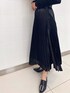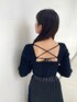 オールブラックの綺麗目コーデ! トップスは背中がレースアップデザインなのがポイント!前もアシンメトリーのスクエアネックなのでデコルテが綺麗に見えます。スカートは異素材を重ねたレイヤードデザインが今年らしい一枚!光沢感のあるプリーツが女性らしさをプラスしてくれます!プリーツからのぞく異素材とサイドにあるボタンが少しカジュアルさも演出してくれます。 クールなイメージのオールブラックを肌見せや素材で女性らしい上品なコーデに仕上げました!