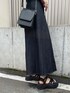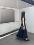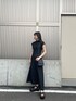 去年から気になってたワンピースがロングバージョンになって再登場!ロング丈のワンピースがとても好きなので即決しました! ショルダーの太さが左右で違うデザインが他と差がつくワンピ!胸下からのハイウエストにロングの丈感が脚長効果をさらに発揮!ダークカラーのデニム素材なのでワンピをあまり着ない方でも挑戦しやすいです! Aラインのフレアデザインがフェミニンさをプラスし、歩いた時の動きがとても綺麗です。 私はコーデに統一感を出し、モードに着たかったのでその他のアイテムも黒を選びました。 肌触り良いボンディング素材のトップスはムルーア定番アイテム!フレンチスリーブなので二の腕の太さをカバーしてくれてありがたい1枚! サンダルはSHAKAの新作デザイン!艶感のあるクロスストラップが上品な印象をプラスしてくれます。