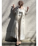 シアー素材のトレンチコートが大人っぽさ引き立てるオールホワイトコーデ!夏はコーデがシンプルになりがちですが、シアー素材の羽織りをプラスするだけで一気にワンランク上のおしゃれを楽しめます!羽織りですが、肘までの袖や涼しげな素材を使ってるので、暑苦しくなくお使い頂けます!オールホワイトでスタイリングする事で、統一感と白でも落ち着いた印象で着て頂けます。合わせたパンツは、ウエストと裾のフリンジがアクセントになる1枚。スリットが入っているので、足首が見えてスッキリします。カジュアルなTシャツなどと合わせてもデザイン性しっかりしているのでとても様になるパンツです!