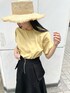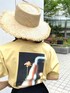 大人気のNINAコラボの新作Tシャツを主役にしたレディカジュアルコーデ!存在感のあるイエローカラーが可愛くてこのアイテムを選びました。前はシンプルだけど、後ろに施されたフォトプリントが、子供っぽくなく大人なプリントデザインなので、他と差がつく1枚です!私はカジュアルになりがちなTシャツを、今回はフレアスカートで合わせて女性らしさを出しました!裾にかけて広がるフレアが、とてもシルエットを綺麗に見せてくれます。スカートですがアウトポケットが付いていてアクセントになり、可愛くなりすぎないので、フレアスカートあまり履かない方でも挑戦しやすいです!ラフィアハットを被って更に夏らしさを演出しました!