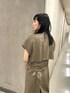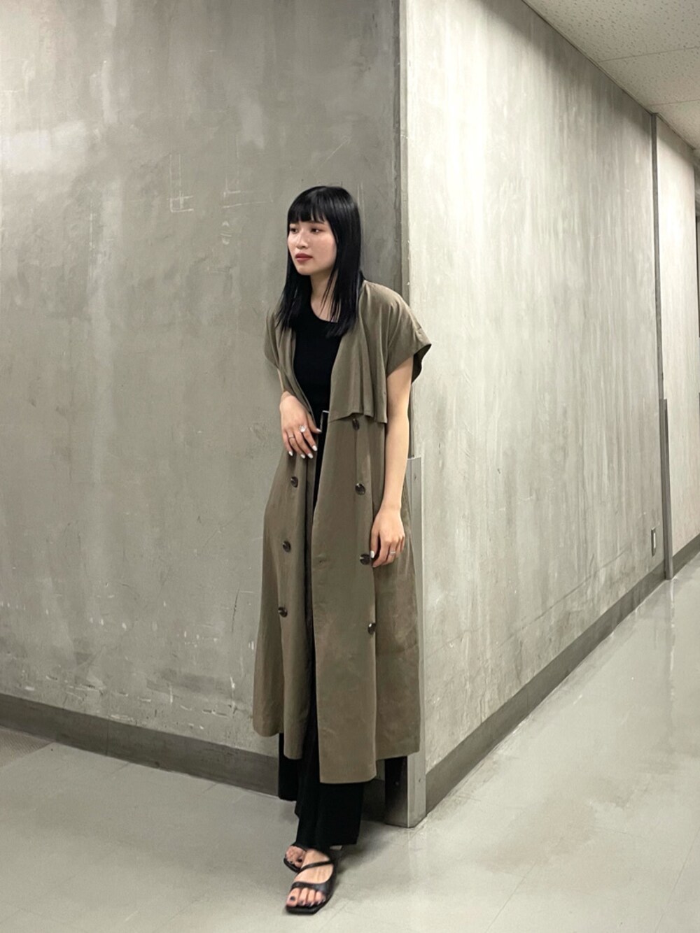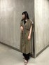 モードな大人ラフスタイル!主役は羽織るだけでこなれ感の出るカーキのロングベスト!リネン素材で、着心地も軽く肌触りも良いです。裾にかけて少し広がりがあるので、動くたびに揺れるシルエットが、更に軽やかさを感じ涼しげです。ロング丈で、袖も気になる二の腕をカバーしてくれるので、年齢問わず着ていただける万能ベストです。ウエストリボンも付いていますので、後ろで結んでも、前で結んでワンピース風でもお使いできます。合わせた他のアイテムはオールブラックでモードさを出し、ロングベストをより引き立たせました!