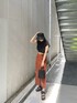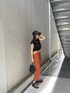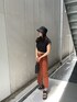 大人カジュアルコーデ! ボディラインを綺麗に見せてくれるペンシルスカートは、ドライタッチ素材にストレッチが効いた生地で出来ているので履き心地抜群です。スリットと切り替え部分のフリンジと、シェル調のバックルベルトが夏ムードを感じます。オレンジの色味も目を引きます。 スリットもサイドに寄っているので、程よい肌見せで◎ トップスは、Tシャツ感覚でお使い出来るタンクトップを合わせてカジュアルさを演出。肩を覆うようフレンチスリーブが二の腕をカバーし、トレンド感もプラス。裾にタックが入っているので立体感のあるシルエットが出て、ボトムとのメリハリが出ます。USAコットンを使用しており、型崩れしにくいのがポイント! 足元はSHAKAのコラボサンダルを合わせて楽ちんに!厚めのソールなので脚も盛れます。ラフィア素材のバケハも今っぽさがでつつ、大人な印象に。このコーデでアウトレットショッピングなど行きたいですね!