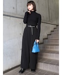 パープルカラーが目を引くメンズライクコーデ!パープルカラーのトップスはトレンドのチャイナボタンデザインのニットで、デコルテがスクエアに開いているので首周りスッキリとした印象に。 タイトで女性らしいシルエットなのもポイントです。ボトムはチェーンベルトが付属のワイドパンツでメンズっぽさを演出しました。ハイウエストでピンストライプが入っているので脚長効果抜群。付属でワンショルダーのサスペンダーもついておりそちらを合わせても◎よりメンズっぽさを出したかったので、足元はマーチンを合わせました。