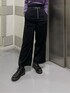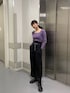 パープルカラーが目を引くメンズライクコーデ!パープルカラーのトップスはトレンドのチャイナボタンデザインのニットで、デコルテがスクエアに開いているので首周りスッキリとした印象に。 タイトで女性らしいシルエットなのもポイントです。ボトムはチェーンベルトが付属のワイドパンツでメンズっぽさを演出しました。ハイウエストでピンストライプが入っているので脚長効果抜群。付属でワンショルダーのサスペンダーもついておりそちらを合わせても◎よりメンズっぽさを出したかったので、足元はマーチンを合わせました。