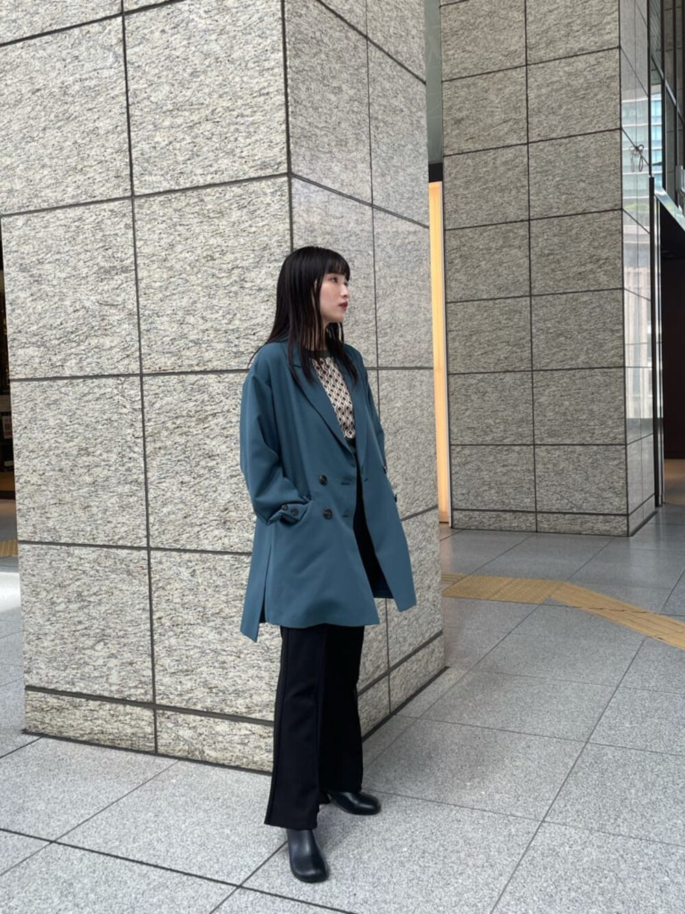 辻村奈々(MURUA)のテーラードジャケット「ディープスリットロングジャケット」を使ったコーディネート