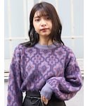 ショートダウンで脚長効果抜群の冬オススメコーデのご紹介です!こちらのダウンはMURUAでおなじみ、エアコンダウンを使用した軽さ保温性を兼ね備えた優秀アウターです。今年のダウンはキルトステッチを入れず、綺麗めな作りなのが特徴です。デニムなどのカジュアルスタイルはもちろん、タイトスカートやワンピースなどと合わせてもまとまります。中はパープルの色味が目を引くジャガードニットをチョイス。触り心地も着心地も良いのが◎レトロなタイルモチーフの柄も主役コーデ間違いなしです。ボトムはカジュアルモードな私らしくパンツを合わせました。こちらのフレアパンツはヴィンテージ感のある色味と、サイドのスリットがポイント。ショートダウンと合わせて更に脚を長く綺麗に見せれるコーディネートに仕上げました。