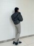 ショートダウンで脚長効果抜群の冬オススメコーデのご紹介です!こちらのダウンはMURUAでおなじみ、エアコンダウンを使用した軽さ保温性を兼ね備えた優秀アウターです。今年のダウンはキルトステッチを入れず、綺麗めな作りなのが特徴です。デニムなどのカジュアルスタイルはもちろん、タイトスカートやワンピースなどと合わせてもまとまります。中はパープルの色味が目を引くジャガードニットをチョイス。触り心地も着心地も良いのが◎レトロなタイルモチーフの柄も主役コーデ間違いなしです。ボトムはカジュアルモードな私らしくパンツを合わせました。こちらのフレアパンツはヴィンテージ感のある色味と、サイドのスリットがポイント。ショートダウンと合わせて更に脚を長く綺麗に見せれるコーディネートに仕上げました。