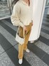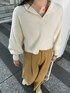 私服MIXのラフカジュアルコーデ!大人気のニットポロはタプッとした袖がポイント。袖先はリブがしっかり入っているのでメリハリが出ます。ポロカラーがトレンド感◎首元はVネックのようにあいてるのでデコルテ見せでも華奢見えしますし、私は中にスキントップスをレイヤードしてこなれ感をプラスしました。ボトムは履き心地抜群のウールライクパンツを合わせました。タックが入ってるので楽ちんながら脚長効果ある優れものです。スニーカーと合わせて裾丈がギリギリにするのが更にラフな印象に◎アイボリーとイエローの2色コーデで統一感をだし、カジュアルだけど洗練された雰囲気を作りました!