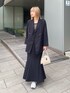 辻村奈々(MURUA)のテーラードジャケット「パウダーツイルダブルオーバージャケット【セットアップ着用可能】」を使ったコーディネート