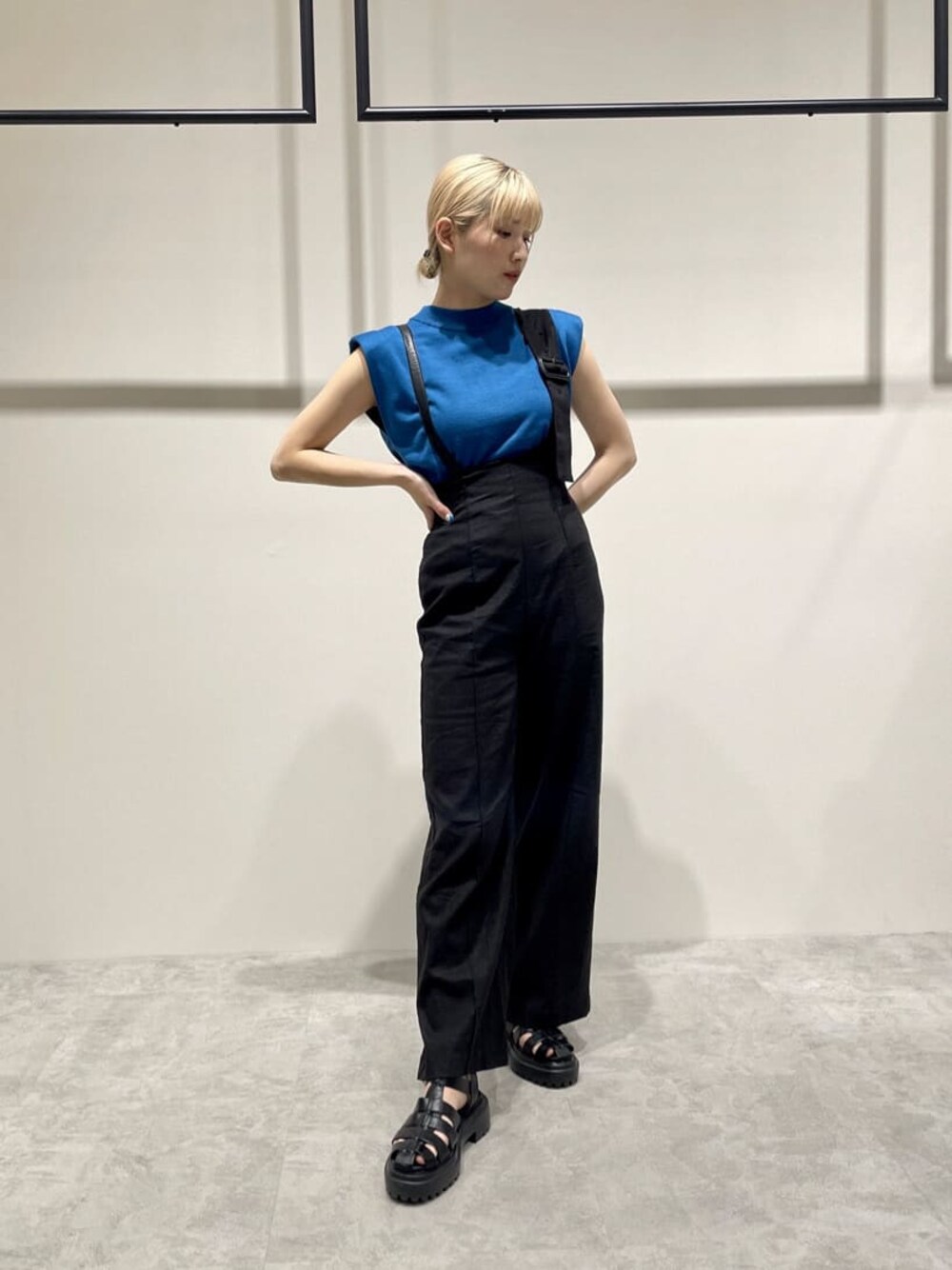 辻村奈々(MURUA)のつなぎ/オールインワン「ハイウエストロンパース」を使ったコーディネート